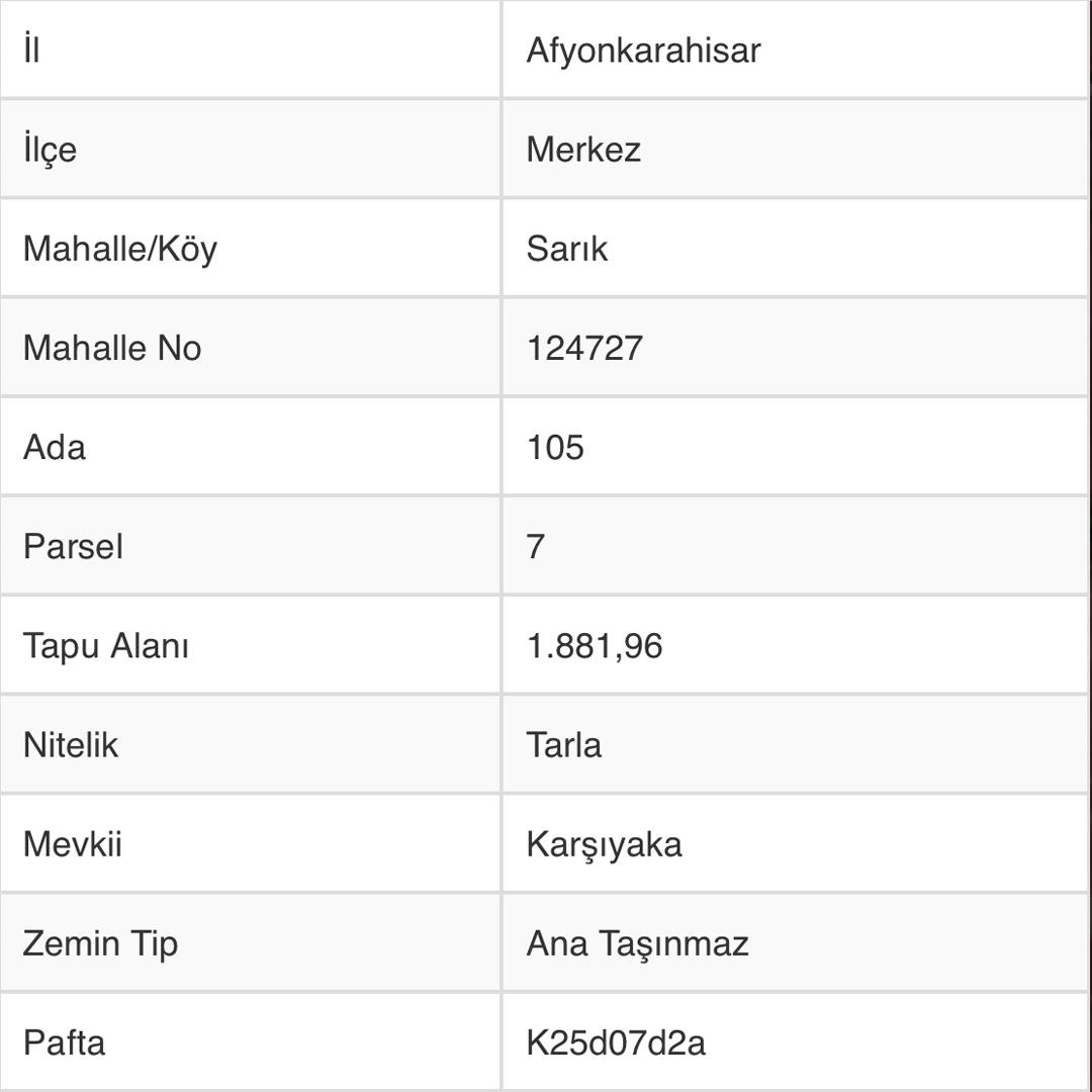 Afyonkarahisar merkez sarık mevkiinde 1800 m2 yolu bulunan tarla satılıktır.